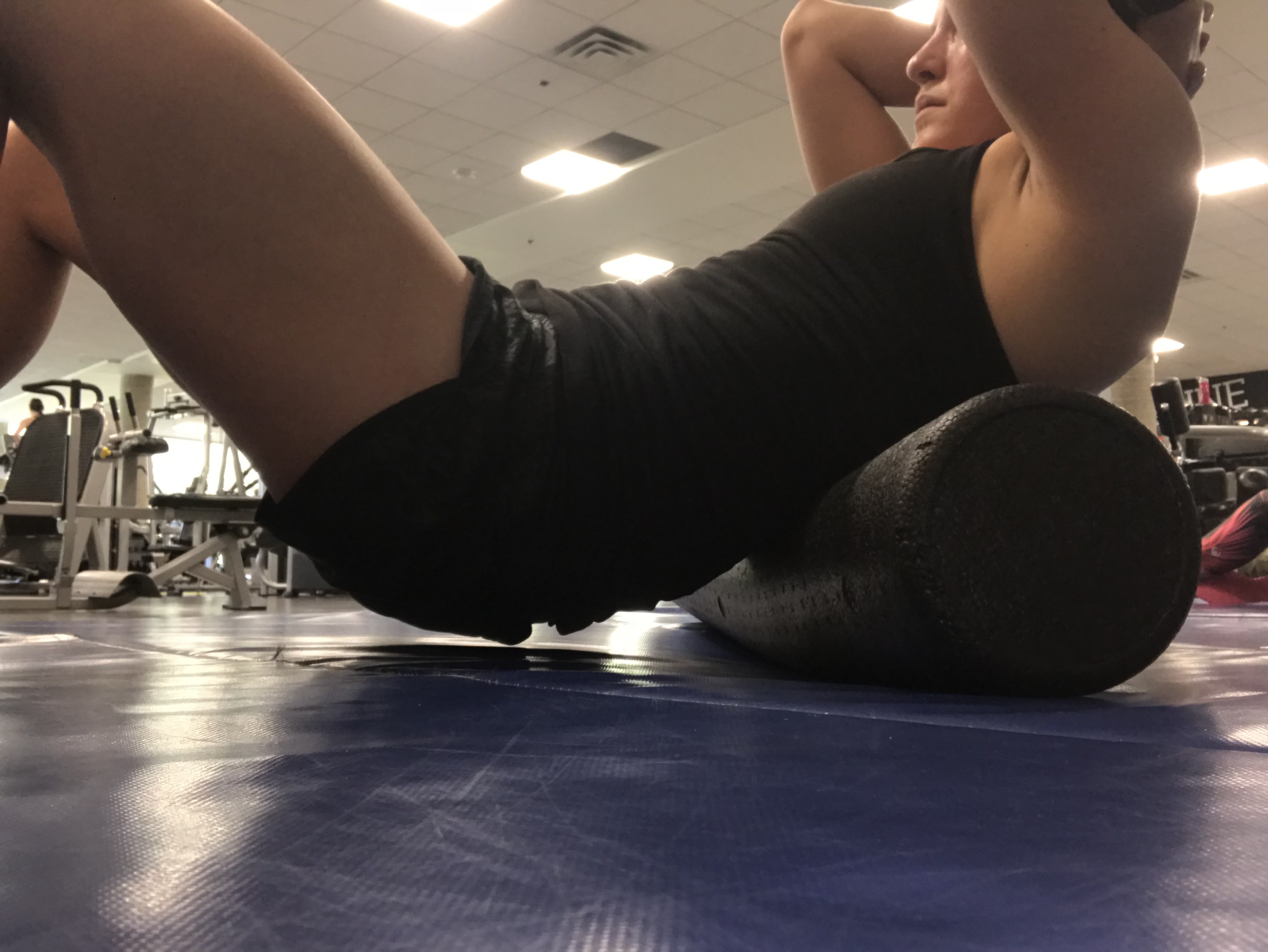 - Thoracic spine (upper back) – Lay with your upper back on the roller, rolling up and down. You might even feel a few pops!